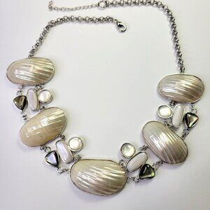 Huge Mother Of Pearl Style Bib Choker Necklace Statement Faux Pearl Necklace