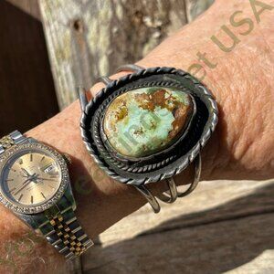 Huge Navajo Sterling Silver Cuff Bracelet Natural Green Brown Turquoise