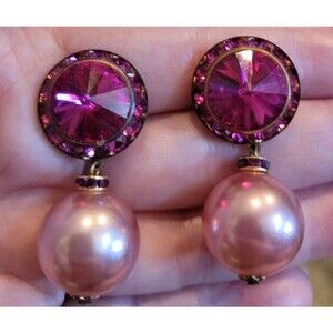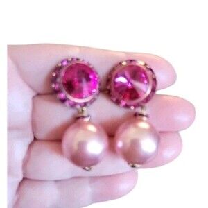 Huge Pink Rhinestone Bobble Faux Pearl Statement HOT PINK Pierced Earrings
