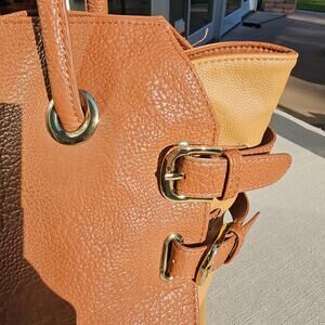 Huge Steve Madden Satchel, Camel Color, Buckle and Tassel Detail Faux Leather