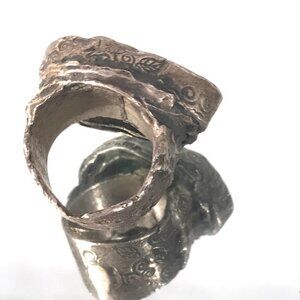 Huge Turquoise Gemstone Sterling Silver Handmade Size 8 Ring Hammered Chunky 925