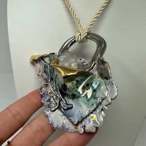 In excellent condition . A one of a kind piece . It’s just stunning , comes with the rope necklace but you could use anything you want to hang it around your neck . Huge quartz settled in the porcelain