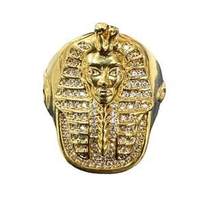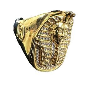 Huge Vintage King Ice Pharaoh Egyptian King Tut Gold Ring Mens 9 Crystal Studded