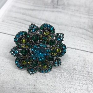 Stretch, band. Silver tone, antique brass tone, glass, antique gold tone.