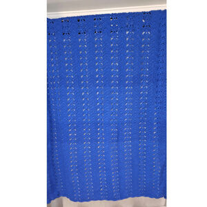 Beautiful bright blue handmade blanket, crocheted in the sunshine pattern, measures approximately 72 x 90