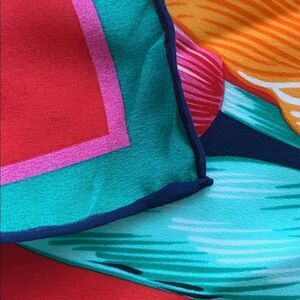 Beautiful vintage Loris Azzaro, French designer, floral scarf in red, green and navy with beautiful detailed tulips. Mint condition, hand rolled edge