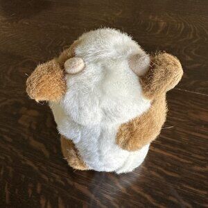 This adorable Cow stuffed toy from Hugfun is perfect for any child or adult collector. With its brown and white fur and articulated limbs, it's sure to become a beloved companion. The toy is in excellent condition and has been well cared for over the years. This 9" Hugfun baby Cow stuffed animal plush toy was made in 2001 and has since been retired from production, making it a rare find for any Hugfun collector. The recommended age range for this toy is all ages, making it a great gift for anyone. Whether you're looking for a Christmas present or just a new addition to your stuffed animal collection, this Hugfun Cow is the perfect choice. This item is in good pre owned clean condition no stains, holes, or odor issues, well maintained. Please review the pictures for more details and size measurement information, thank you.