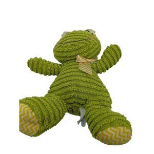 Hugfun Green Frog Plush Toy With Yellow Chevron Bow 15" ribbed Terrycloth