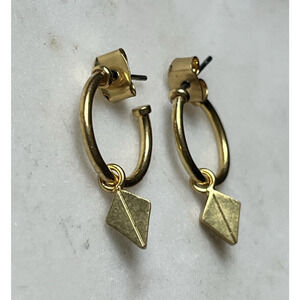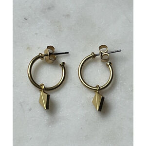 Huggie Hoop Earrings with Diamond Shape Charm Dainty Gold Tone Mini Hoops