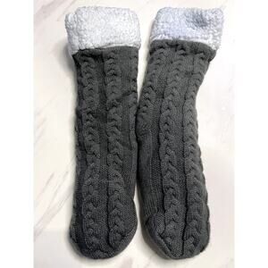 Huggle Premium Fleece Slipper Socks Non-Slip Grey As Seen on TV Cable Knit