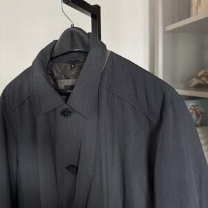 Hugo BOSS Black Quilt Lined Water Repellent Button Front Overcoat 46R Collared