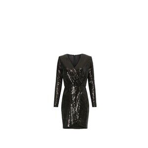 Black sequins (93% Polyester, 7% Elastane). Hourglass. Long sleeves. V-neck. Back zipper closure.