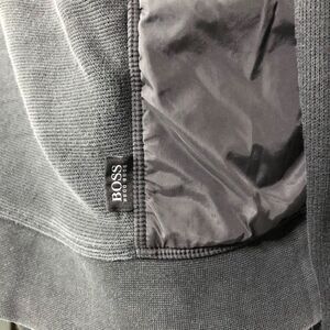 Dark Hugo Boss Zip Up Sweater With Quilted Shoulders And Sides.