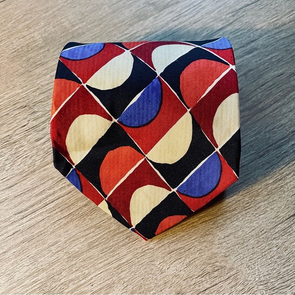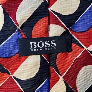 Hugo Boss 100% Silk Necktie Red/Blue/Black/Cream Geometric Design