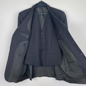 Hugo Boss 42R 100% Wool Sport COAT + VEST Blazer Jacket Striped 3Button Black