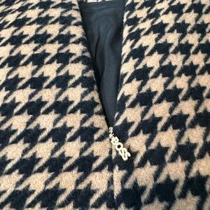 Thick fabric tweed/wool style feeling with thin liner on the inside.
