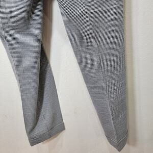 Hugo Boss brand Acrila Pants slacks. Checkered texture with black and white to make a gray look. Zip, clasp and button closure. Straight leg with small cuff on ankles. Size 6.