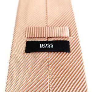 Hugo Boss Beige Orange Striped Woven Silk Tie