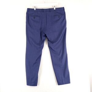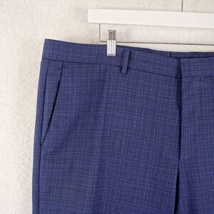 Hugo Boss Ben2 Slim Fit Wool Blue Brown Check Flat Front Mid Rise Pants 40/32
