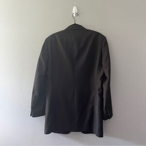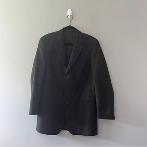 Solid black blazer with brown lining. Three button closure, notch collar. 100% wool. Size 40L