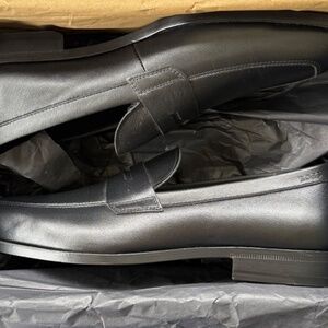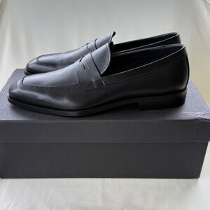 Hugo Boss Black Leather Dress Penny Loafer Mens Shoe Size 9.5