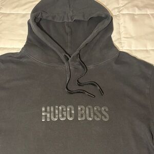 Hugo Boss black short sleeve hoodie. Features subtle front logo. Casual and sleek design.