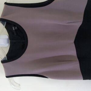 This sophisticated sheath dress by Hugo Boss features a sleek sleeveless design with a classic crew neck, perfect for work or cocktail occasions. Size 4 fully lined The elegant black and brown color palette adds a touch of timeless style, while the midi length offers a flattering silhouette.