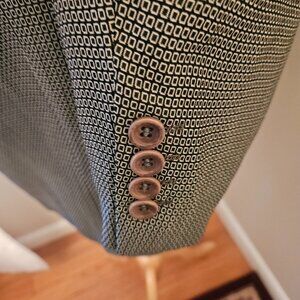 Unique Hugo Boss Black and Cream two button blazer, brown inner lining, front pockets and lapel pockets on the inside. Preowned, gently worn. Perfect for Prom or wedding guest. PLEASE REVIEW ALL IMAGES INCLUDING MEASUREMENTS, all sales are final. Wear appropriate for age.