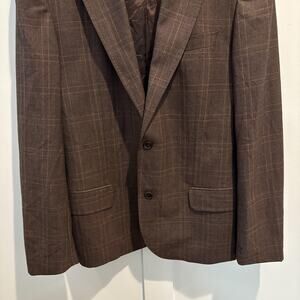 Hugo Boss Blazer Mens 42L Brown Windowpane The Jam Sharp Virgin Wool Sport Coat