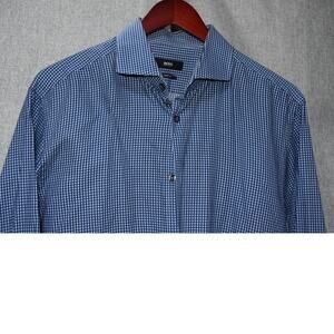 Hugo Boss Blue Gingham Check Button-Up Shirt Size 16.5 32/33