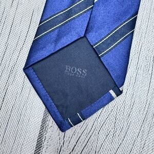 Hugo Boss Blue White Tonal Bias Slim Neck Tie 100% Silk