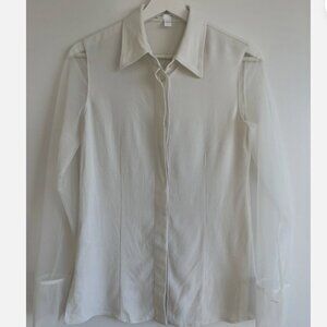 Hugo Boss Bremmy Sheer Sleeve Blouse Ivory, Sz 10