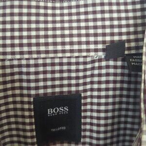 Hugo Boss Brown Gingham Brown and White Shirt - Size 41 Like New