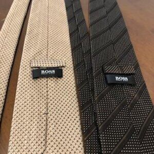 -Hugo Boss Brown Tan Silk Neck Ties Bundle of 2.