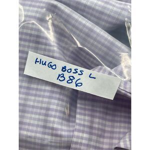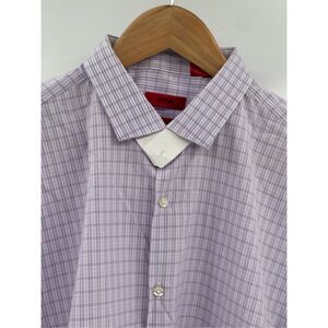 Hugo Boss Button Down Dress Shirt Slim Fit Men 44 Large Purple Plaid Check
