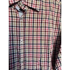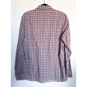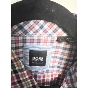 Hugo Boss Button Down Shirt Plaid Regular Fit Burgundy Red Navy Blue Office Work