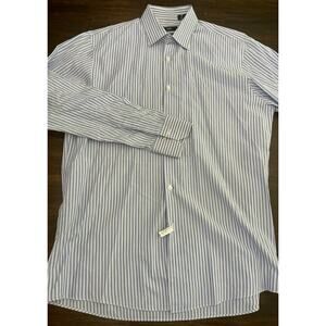 Hugo Boss Button Up Shirt Mens Size 16 34/35 Blue Striped Long Sleeve