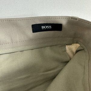 Hugo Boss Cagan Pants Mens 38R Solid Beige Wool Blend Flat Front Slacks