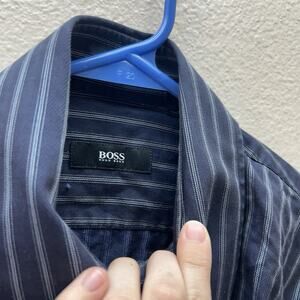 Hugo Boss Career Button Up Dress Shirt Blue Pinstripe 15.5 34/35 Collared