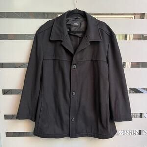 Hugo Boss Chester Black Cashmere Wool Collared Peacoat Size 46R