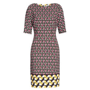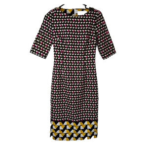 Hugo Boss Dareika Anthracite Sheath Dress Geometric Print Short Sleeve 2 XS