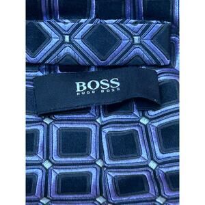 Elevate your formal wardrobe with this luxurious Hugo Boss tie. Featuring a sophisticated geometric design in dark purple and black, this tie adds a refined touch to any outfit. Crafted from 100% silk and made in Italy, it exemplifies premium quality and style.