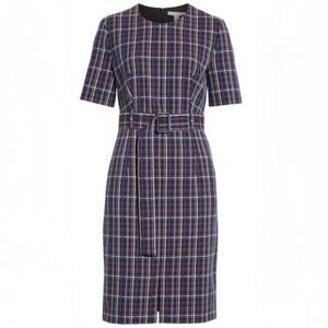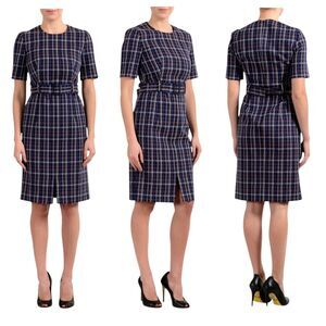 HUGO BOSS Klien Blue Fantasy Ditania Check Ponte Knit Belted Dress $595.