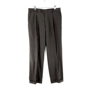 Hugo Boss Dr Hook Virgin Wool Brown Pleated Cuffed Mid Rise Dress Pants 35/30