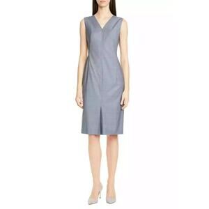 Hugo Boss Dress Sheath Dalanis V Neck Sleeveless Windowpane Check Wool Silk 10 M