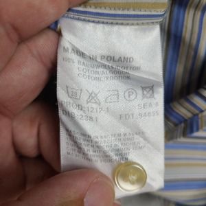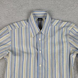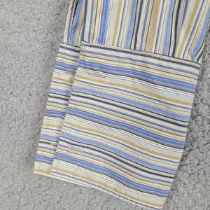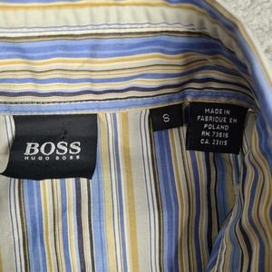 Hugo Boss Dress Shirt Men's Small French Cuff Striped Blue Gray Gold Button Up