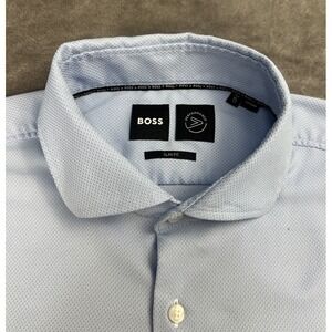 Hugo Boss Dress Shirt Mens XL Blue Slim Fit Button Up 17 45 Performance