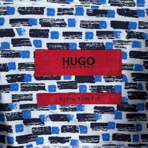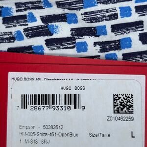 Hugo Boss Empson Extra Slim Fit Shirt Open Blue Print NWT Size L