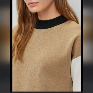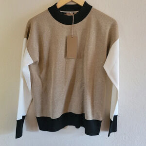 Hugo Boss, Fangal Metallic Colorblock Pullover Sweater, Black/Gold/Cream, Size M.