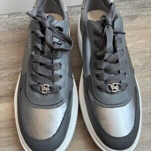 Hybrid trainers with silver-tone laminated details by BOSS. This pair is crafted in a combination of real leather and synthetic coated fabric. Synthetic coated fabric, sometimes referred to as faux leather, is a fabric designed to resemble real leather, and/or display a matte, glossy, smooth, or textured, coated appearance.